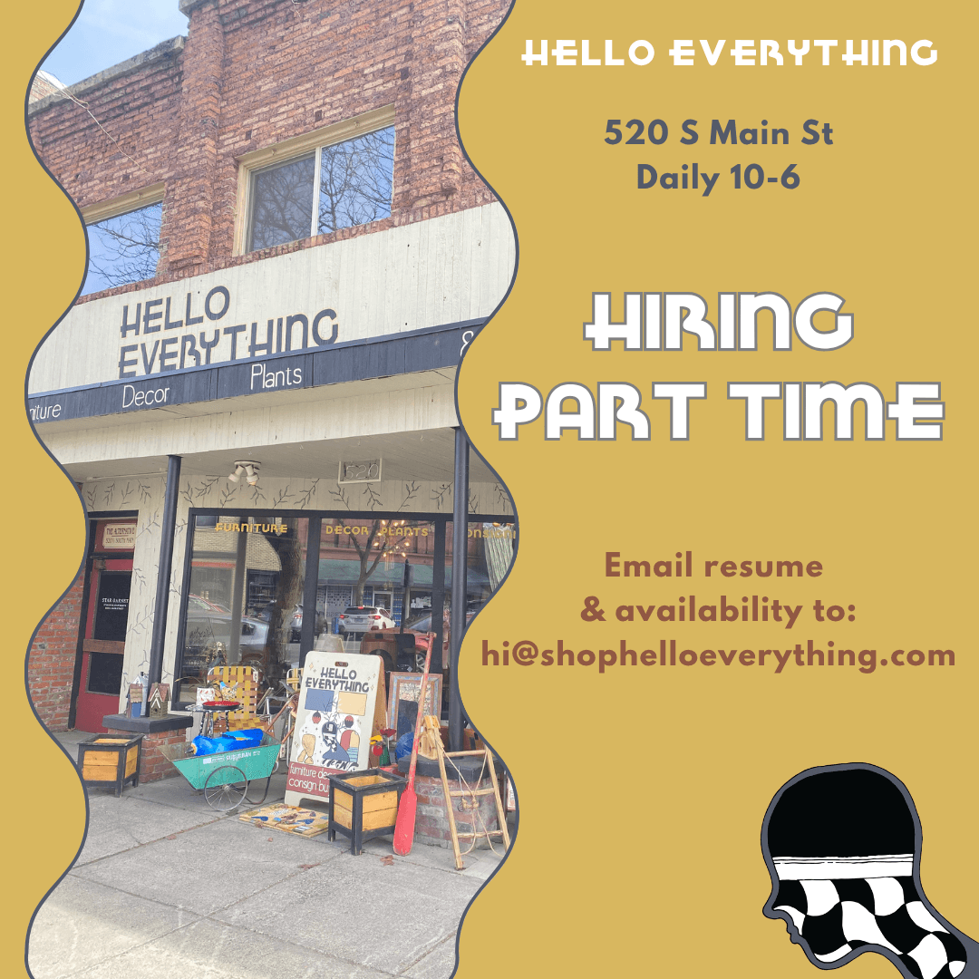 Work among the beautiful plants and decor at Hello Everything, while keeping shoppers company and handling consignment inventory.