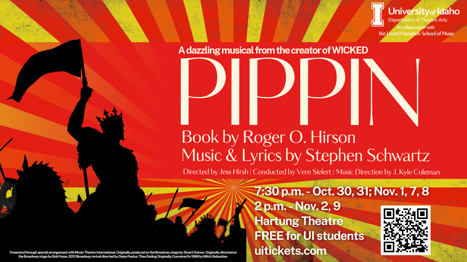 The University of Idaho Department of Theatre Arts presents “Pippin,” a dazzling musical from the creator of “Wicked.” There will be seven shows, starting with a preview night at 7:30 p.m. Thursday, Oct. 30, at the Hartung Theater, 625 Stadium Drive, Moscow. Additional performances include: 7:30 p.m. Friday, Oct. 31...