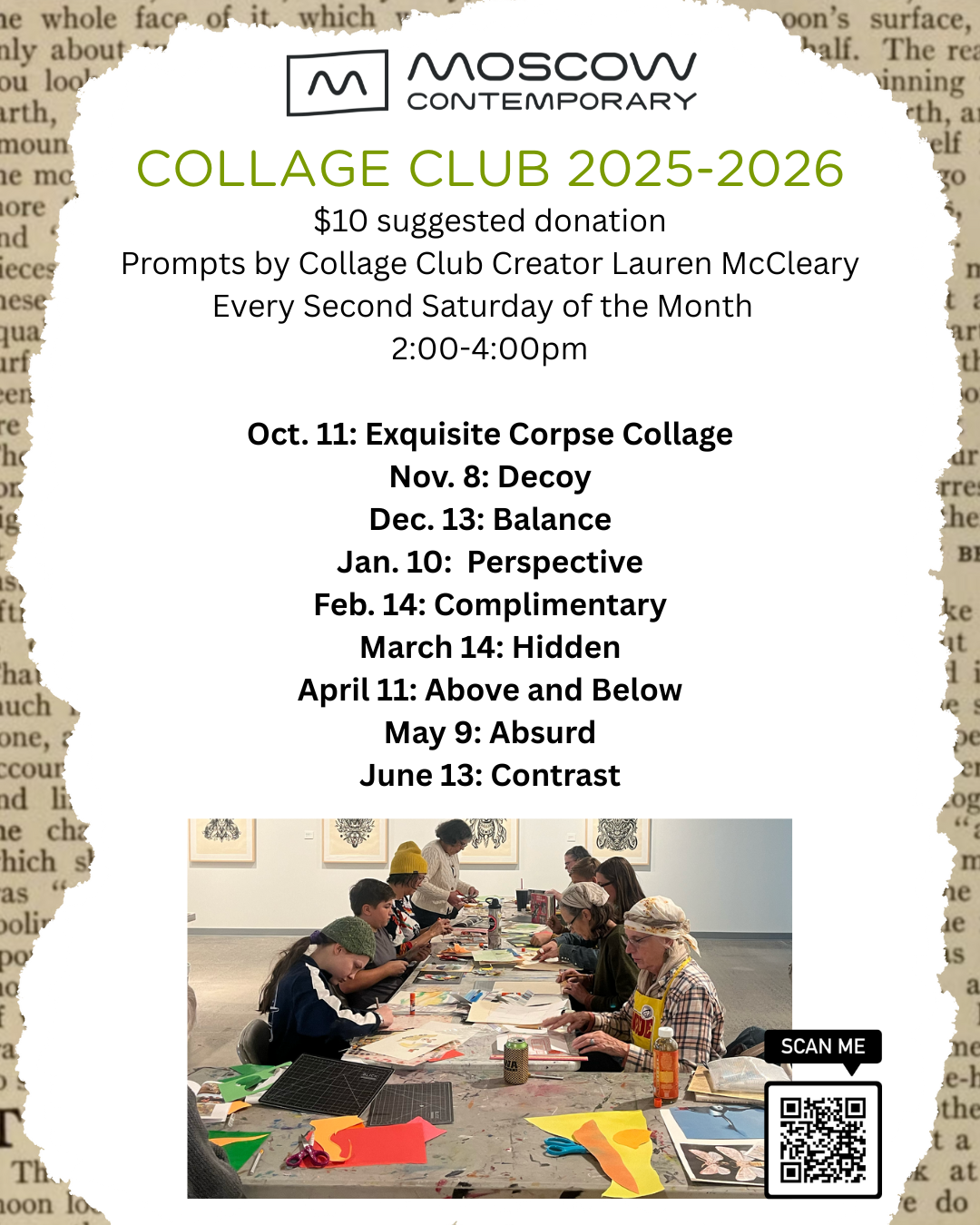 Moscow Contemporary's After School Art Program consists of art and movement classes for ages 2-11 year olds. Our art classes are offered on Tuesday (Ages 5-7) and Thursdays (Ages 8-11) from 3:45-5:00pm. These classes are taught by Education Director Megan Mack and explore diverse materials, mediums, and art forms while using inspiration from contemporary artists...